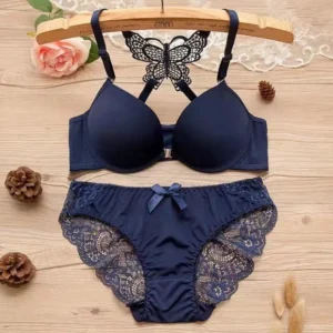 2 Piece Bra Set Single Front Closure Butterfly Back Design Comfort Push Up Bra